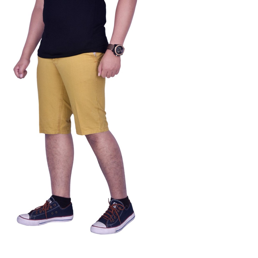 Dgm fashion1 celana chino pendek polos kuning chinos Sumber : shopee.co.id
